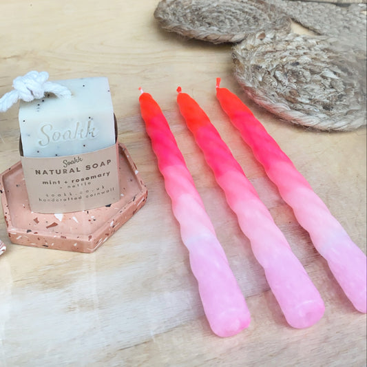 Dip Dyed Neon Twisted Dinner Candles - Shades of Pomegranate